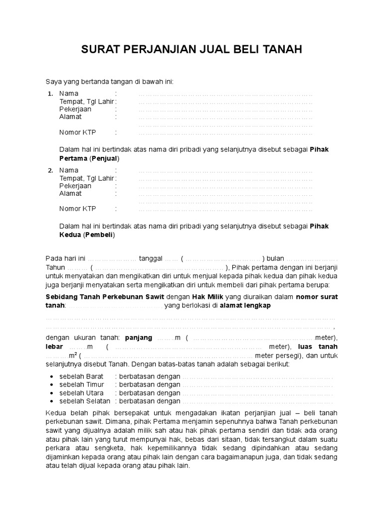 Semoga ulasan dan contoh format yang kami lampirkan diatas dapat bermanfaat untuk. Mau memastikan surat jual beli tanah yang anda miliki sah? Demikian surat perjanjian jual beli tanah ini dibuat dengan penuh kesadaran dan tanpa paksaan antara para pihak dan dipatuhi sebagai hukum yang mengikat para pihak. Adapaun contoh dari surat jual beli tanah dapat dilihat sebagai berikut kebun juga merupakan salah satu tanah yang sering dijual oleh pemiliknya. Ya, hal ini dilakukan demi kelancaran transaksi supaya dijauhkan.